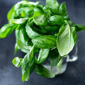 Farina di grano tenero tipo “00” granito, basilico emulsionato con farina e olio extra vergine di oliva, uova